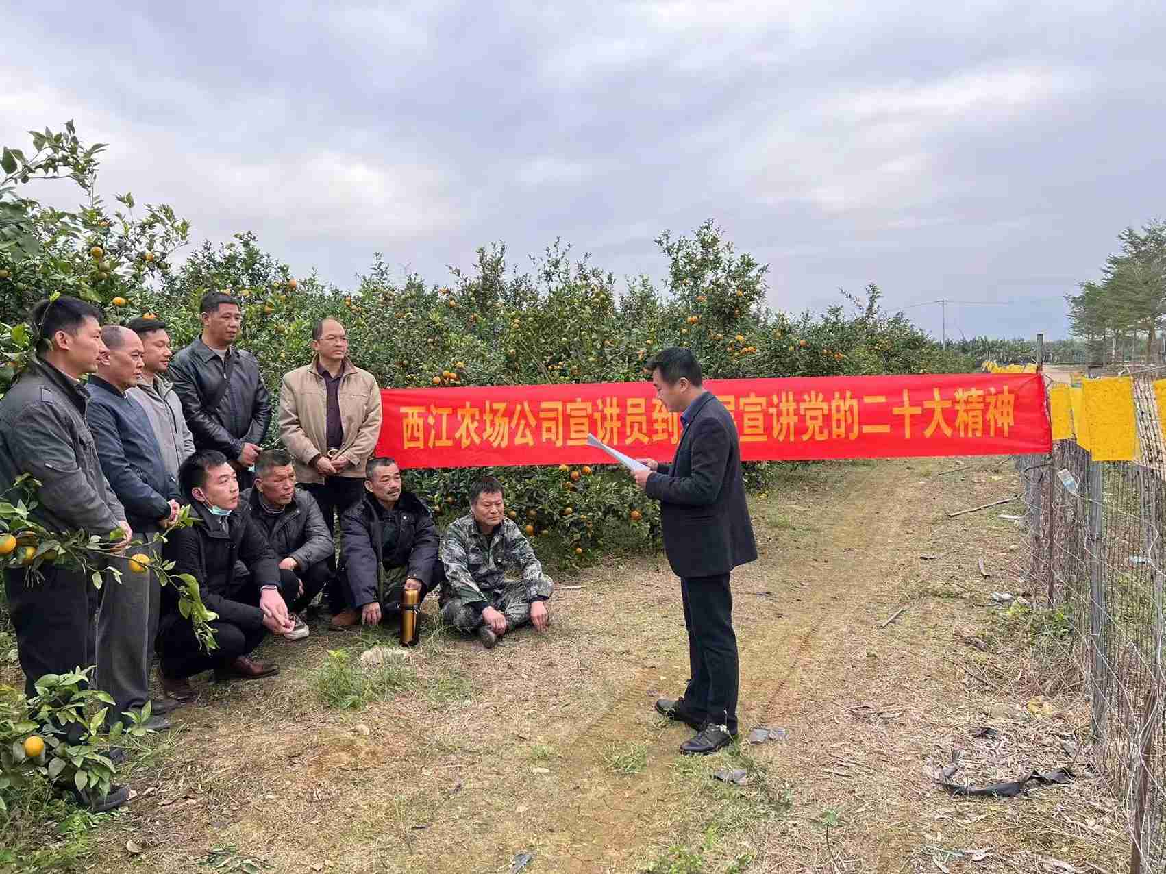 为迅速掀起学习宣传贯彻党的二十大精神热潮,引导公司全体干部职工把思想和行动统一到党的二十大精神上来,12月初,西江农场公司领导班子成员分别到下属单位开展党的二十大精神宣讲和2022年度重点工作督查工作,农场公司宣讲员到生产经营一线开展党的二十大精神宣讲活动。