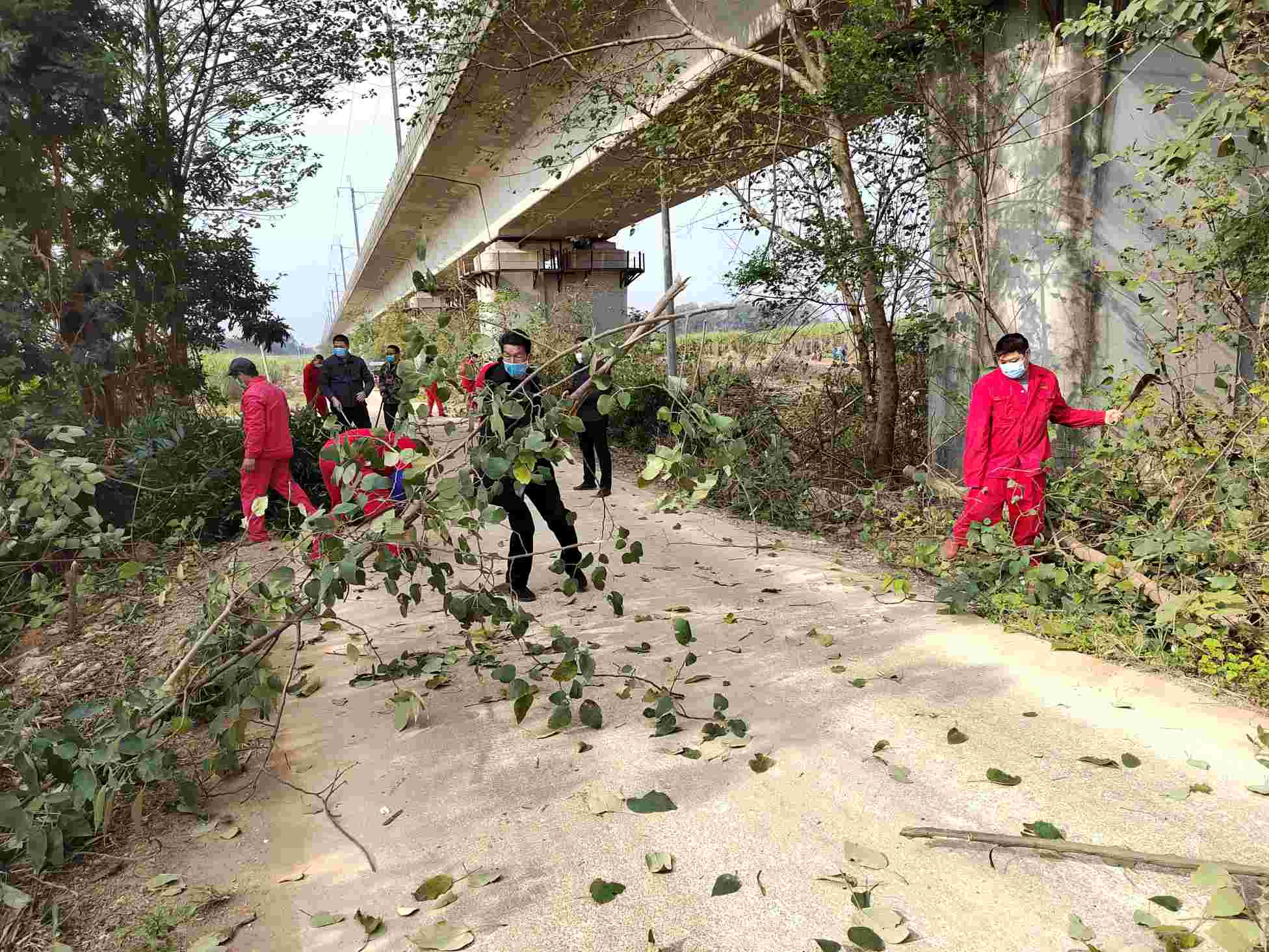 七分场41号地铁路便道两边旺盛的杂草杂树阻挡交通视线,影响职工群众安全出行。为消除安全隐患,杜绝安全事故的发生,七分场党支部与西江畜牧公司党支部共同吹响先锋集结号,双方组织党员清伐41号地铁路便道两边的杂草杂树。经过大家共同努力,清理了便道两边的杂草杂树,道路变得整洁干净,视线变得开阔,安全隐患得以消除,为职工群众的安全出行创造了便利的条件。