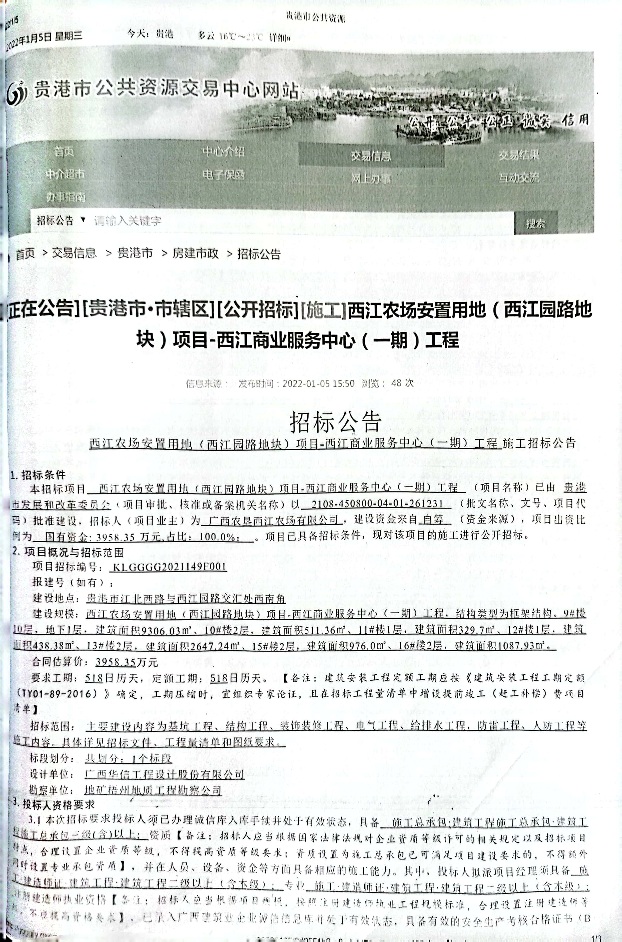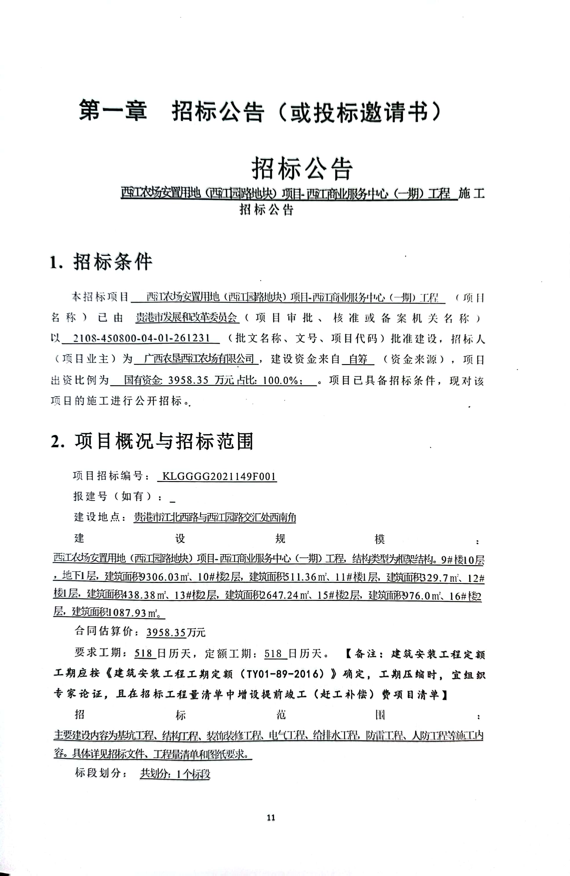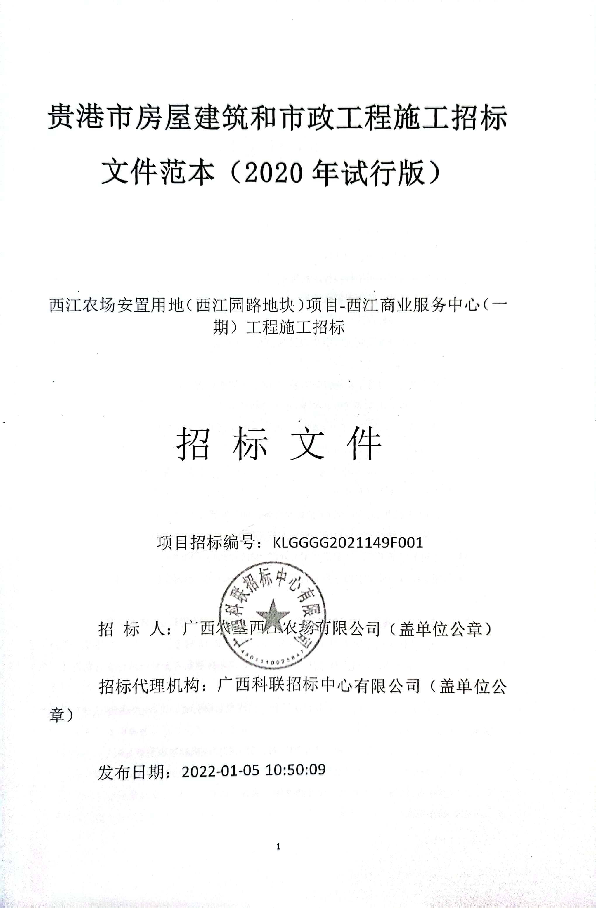 西江农场安置用地(西江园路地块)项目-西江商业服务中心(一期)工程招标公告